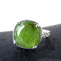 鮮やかなグリーンが目を引くペリドットを、透かし模様の台座にセッティングしました。