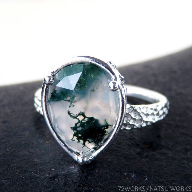 インクルージョンが映える涙型のアゲートを、透かし模様の台座にセッティングしました。