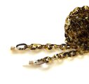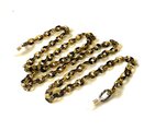 また、眼鏡とチェーンをむすぶ ゴムのパーツは 通常よりも しっかりとメガネをホールドしてくれる 抜けにくい素材のものを使用しております。。ゴムの間の金属(アメリカ製ピューター)がうごきますので、そこをあけてメガネを通し、好きな位置を決めたら、また部品で締めて、うごかないようにしますが、その際、かならずコードの部分でひっぱらないよう、下部のゴムの部分を持ってから行ってください。