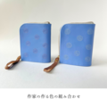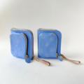 刺繍革財布『SHABON』はなだLightBlue×パープル(牛革)二つ折り☆ミニ財布☆