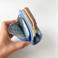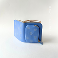 刺繍革財布『SHABON』はなだLightBlue×White(牛革)二つ折り☆ミニ財布☆