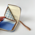 はなだ色(やや紫味のライトブルー)牛革に、