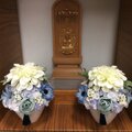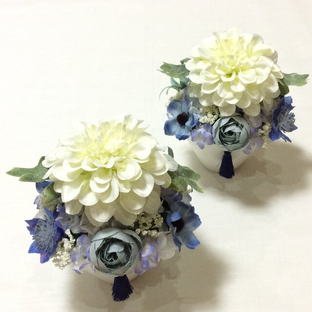 ◇アーティフィシャルフラワーで、白い陶器の花器にアレンジしました1対の仏花です。