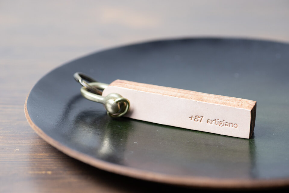 厚みのある姫路産のヌメ革を4枚重ね合わせ重厚感のあるキーホルダーに仕上げました。