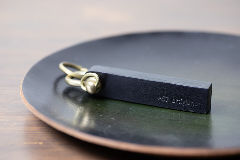厚みのある姫路産のヌメ革を4枚重ね合わせ重厚感のあるキーホルダーに仕上げました。