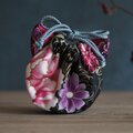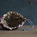 作品名: 猫型の台湾花柄x絹織物mini巾着ポーチ