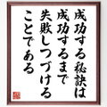 名言「成功する秘訣は、成功するまで失敗しつづけることである」手書き書道色紙額/受注後の毛筆直筆(Z2954)