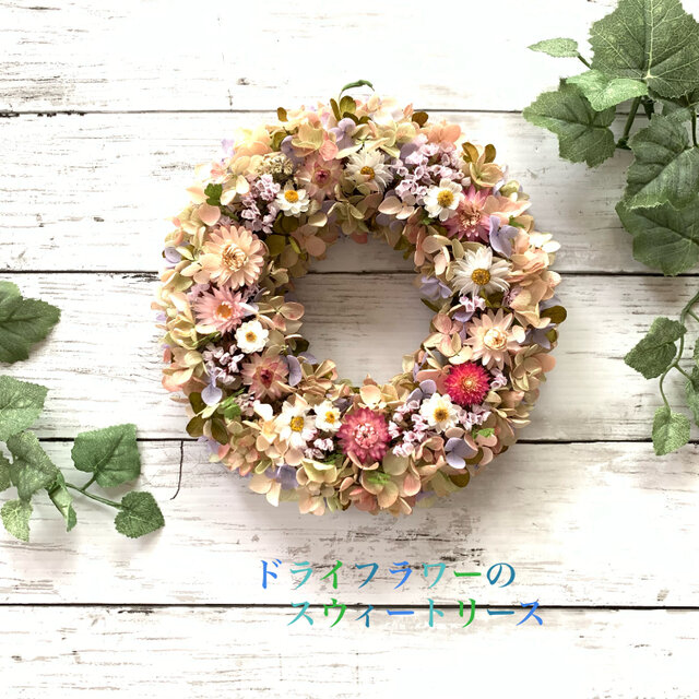 【お部屋の模様替えに!】ドライフラワーのスウィートリース ♯ドライフラワー ♯誕生日ギフト ♯新築祝い