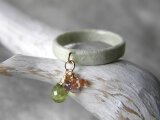 「優彩」は淡い若草色の和紙リングに宝石質ペリドットとオレンジサファイヤ