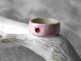 「桃香」は桃色の和紙を濃淡のある霞模様に張り重ねて、宝石質ガーネットを合わせ