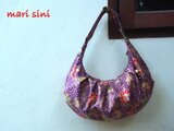 ファスナーあきで三日月型、タックが入っているので、見た目よりも収納力抜群の使いやすいバッグです。