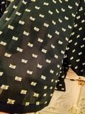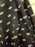 薄手のコットンの黒地に、ピンク、イエロー、ゴールドの小さいリボンが付いている、
