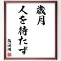 陶淵明の名言「歳月人を待たず」を書道家が毛筆書道で色紙に直筆、額に入れてお届けします。当店では挑戦、努力、成功、幸福、感謝、成長、家族、仕事、自己啓発など様々なテーマから人生の糧となる名言、四字熟語、諺、故事成語、格言を厳選、毛筆で直筆、お届けしています。これまで、6,000名以上の方からご注文いただき、お届けしてきました。