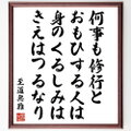 至道無難の名言「何事も修行とおもひする人は身のくるしみはきえはつるなり」手書き書道色紙額/受注後の毛筆直筆(Z2959)