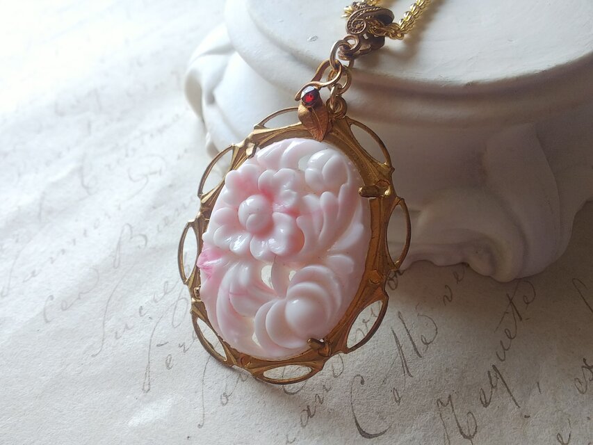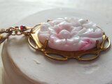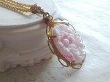 ヴィンテージ White/Pink Swirl-Flower-Glass/Garnet クラシカルネックレス