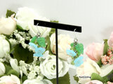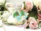 ビーズアクセサリー,ビーズ,ビーズピアス,アクアカラー,ブルー,ペリドット,オリーブ,花,チェコビーズ