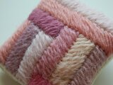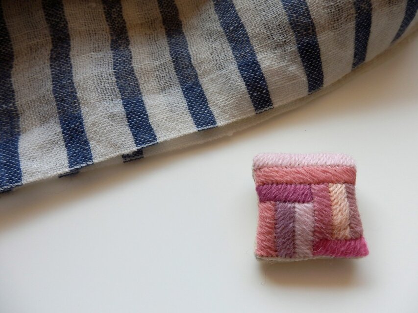 さまざまなトーンのピンク色をつみきを重ねた様に刺繍をしました。