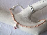 天然石ピンクトルマリンの小さなチャームが繊細なブレスレットに