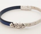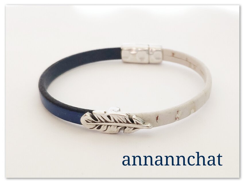 ヨーロッパ製の高級本革 5mm幅 艶のある青と ポルトガル製の白のコルクレザーで 2カラーのブレスレットを作りました。