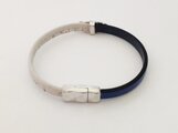 【ヨーロッパ製 本革 2カラー 青(本革)と 白(コルクレザー)ブレスレット】青 マグネット留め具