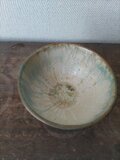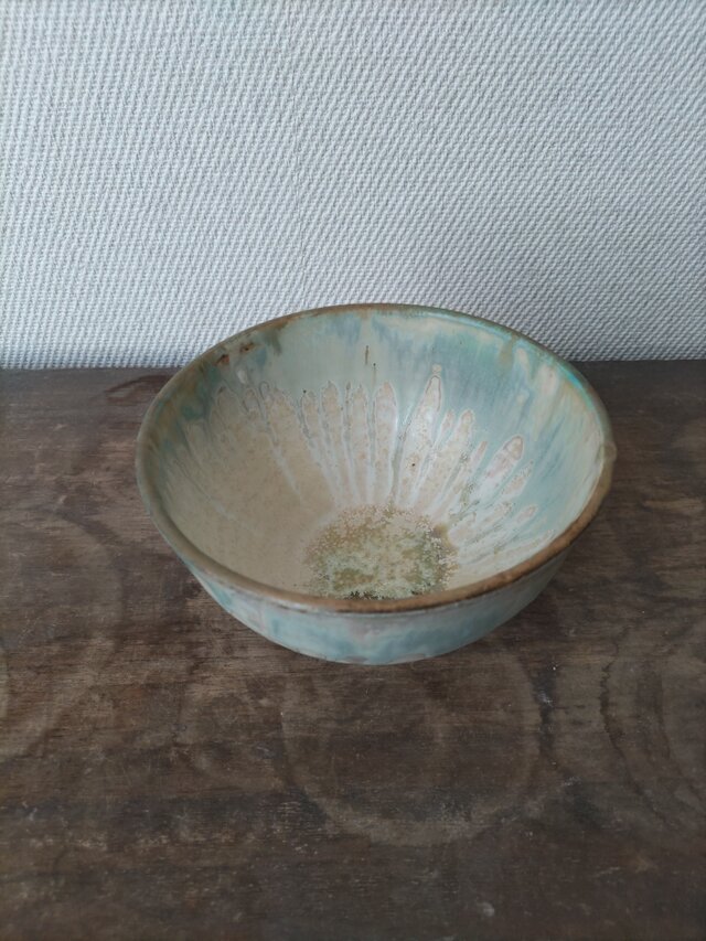 ニ種類の釉薬を掛けた飯碗です。混ざりあった釉薬が面白い景色を生み出しています。