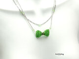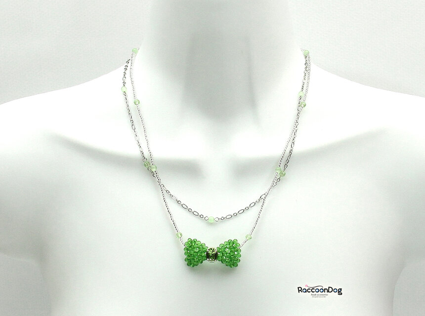 スワロ・クリスタルリボン2連ネックレス(ペリドット)【スワロ ビーズネックレス】 《ビーズアクセサリー》