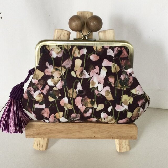 リバティ スウィートミッドナイトで作りました木玉親子がま口ミニ財布です