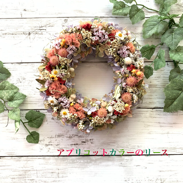 【ドライをお部屋に!】アプリコットカラーのリース ♯プチギフト ♯ドライフラワー ♯ドライフラワーリース