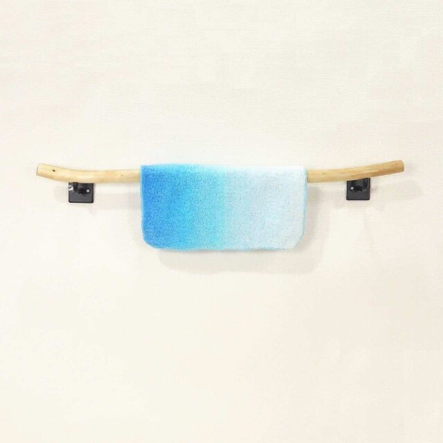 画像ではハンドタオルを掛けております。タオルを掛ける部分の幅は約 38cm、流木の径は 1.7cm ほどです。