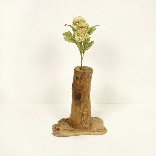 【温泉流木】流木板の台座付き渋いグラデーションの流木の一輪挿し・花器 R050137