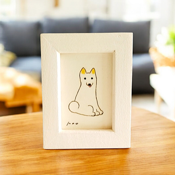 インテリア インテリアアート イラスト イラストレーター アナログイラスト ミニ額縁 ナチュラルインテリア ギフト 水彩 水彩画 犬の絵 犬 白い犬 リラックス 原画