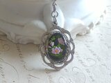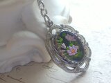 ヴィンテージ Pinkアネモネ/Black(18×13㎜)シルバーToneクラシカルネックレス