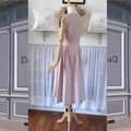 ♦️Sale!♦️クラシカルな大人ピンクのリネンワンピース『フレンチスリーブ・ギャザースカート・薔薇モチーフ』