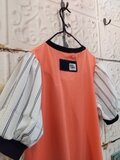 ストライプが爽やかな生地で、たっぷりパフスリーブにしました。