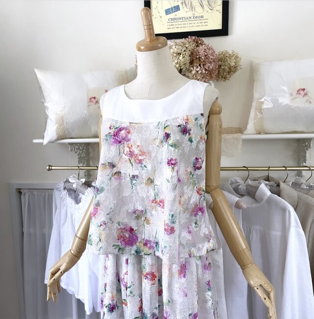 ふんわり涼しい夏のブラウス『ノースリーブ・ボイル・コットン・花柄』