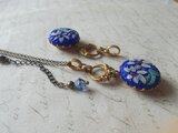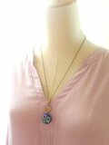 ヴィンテージ White-Flower/瑠璃紺(約21㎜)クラシカルflowerネックレス