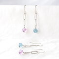 透明感があってみずみずしいブルーとパープルのフローライトにオーバルチェーンを合わせたシンプルで爽やかな雰囲気のピアスです。