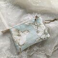 淡いペパーミントカラーに小鳥と花模様のとても可愛い布です。