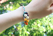 革ひもを使った、ウッドビーズがコロコロした表情豊かなブレスレットです。