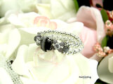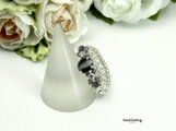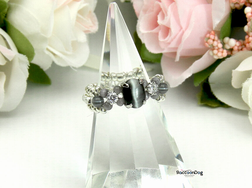 ビーズ,リング,コスチュームジュエリー,ビーズアクセサリー,ビーズリング,ビーズ指輪,キャッツアイ,クリスタル,ブラック,ジルコニア