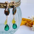 エメラルドは5月、イエロートルマリンは10月の誕生石ですが、夏にぴったりの色合いのピアスです。