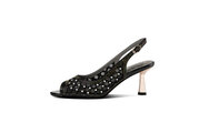 オープントゥ異素材メッシュキラキララインストーンスタッズバックストラップサンダル全2色