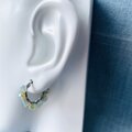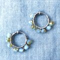 一部にゴールドの入ったアクアブルーのチェコビーズ(ファイアポリッシュ)が美しく並ぶ、使いやすいサイズのフープイヤリング&イヤーカフです。