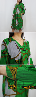 アフリカンプリントのゆったりサイズロングチュニック、ワンピース