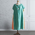 PSNY 麻 リネン・ジェイドグリーン・グラデーションのサイドタック・ワンピース フレンチスリーブ AP11