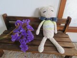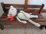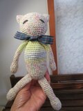 生成りにカラフルな糸がミックスしたサマーヤーンでネコちゃん編みました。