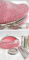 口金 : シルバー、クリアダイヤつまみ、10.5cm、丸型、両カン