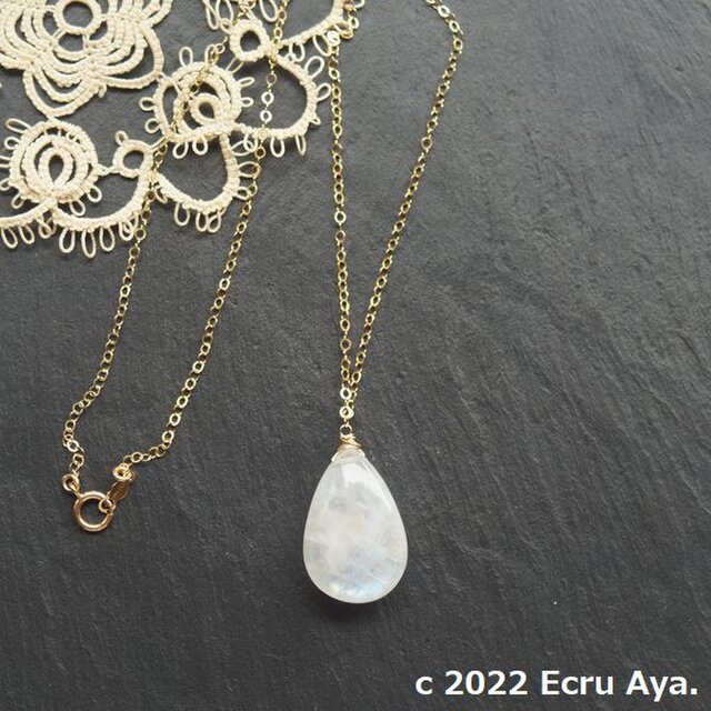 素材:大粒宝石質レインボームーンストーンAAA*ペアシェイプ、その他14kgf