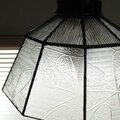 模様入りクリアガラスは片面に模様の凹凸があり、もう片面は滑らかです。どちらを表側にするかはその作品ごとに悩みますが、このペンダントライトでは模様の質感を楽しんでいただけるよう凹凸面を表側にしました
