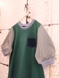 身頃のグリーンの生地は鹿の子コットと言って、ポロシャツなどにつかわれる涼しくてさらっとした生地です。